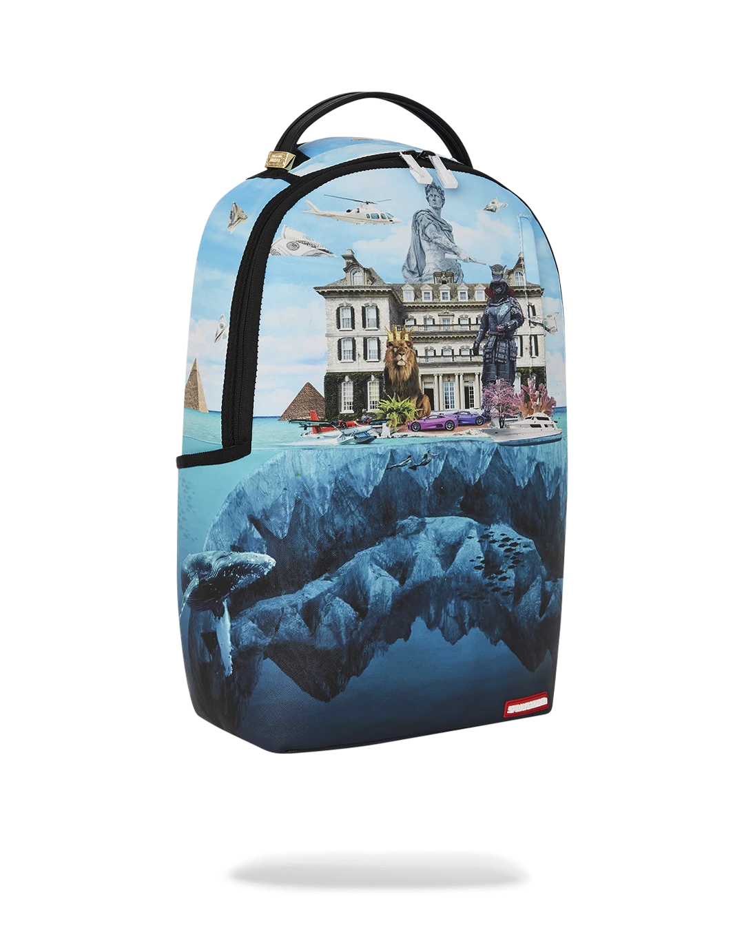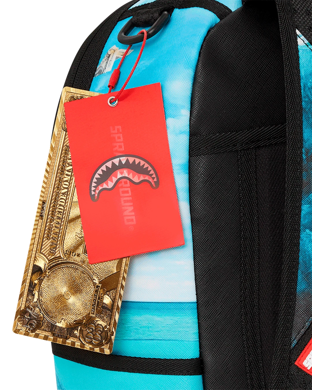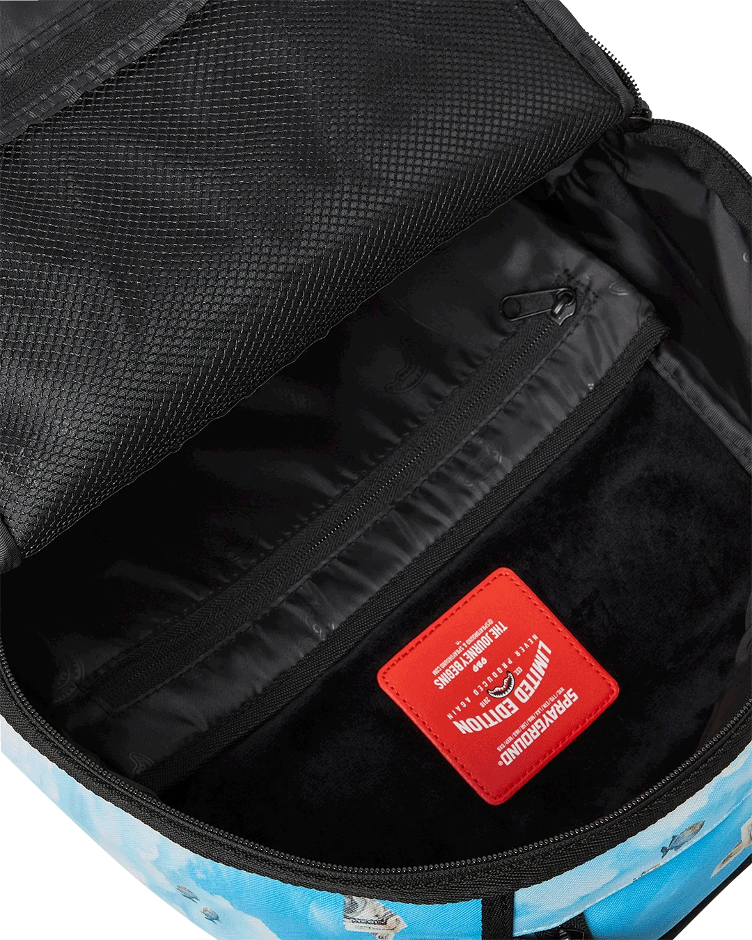 Dimensions: 18″ x 6″ x 11.5″ • Front zipper pocket • Side pockets • Zippered Stash pocket • Separate velour sunglass compartment • Ergonomic mesh back padding • Adjustable Straps for custom sizing • Gold zippers with metal hardware • Metal “Sprayground Authentic” badge • Slide through back sleeve connects to carry-on luggage to free your hands