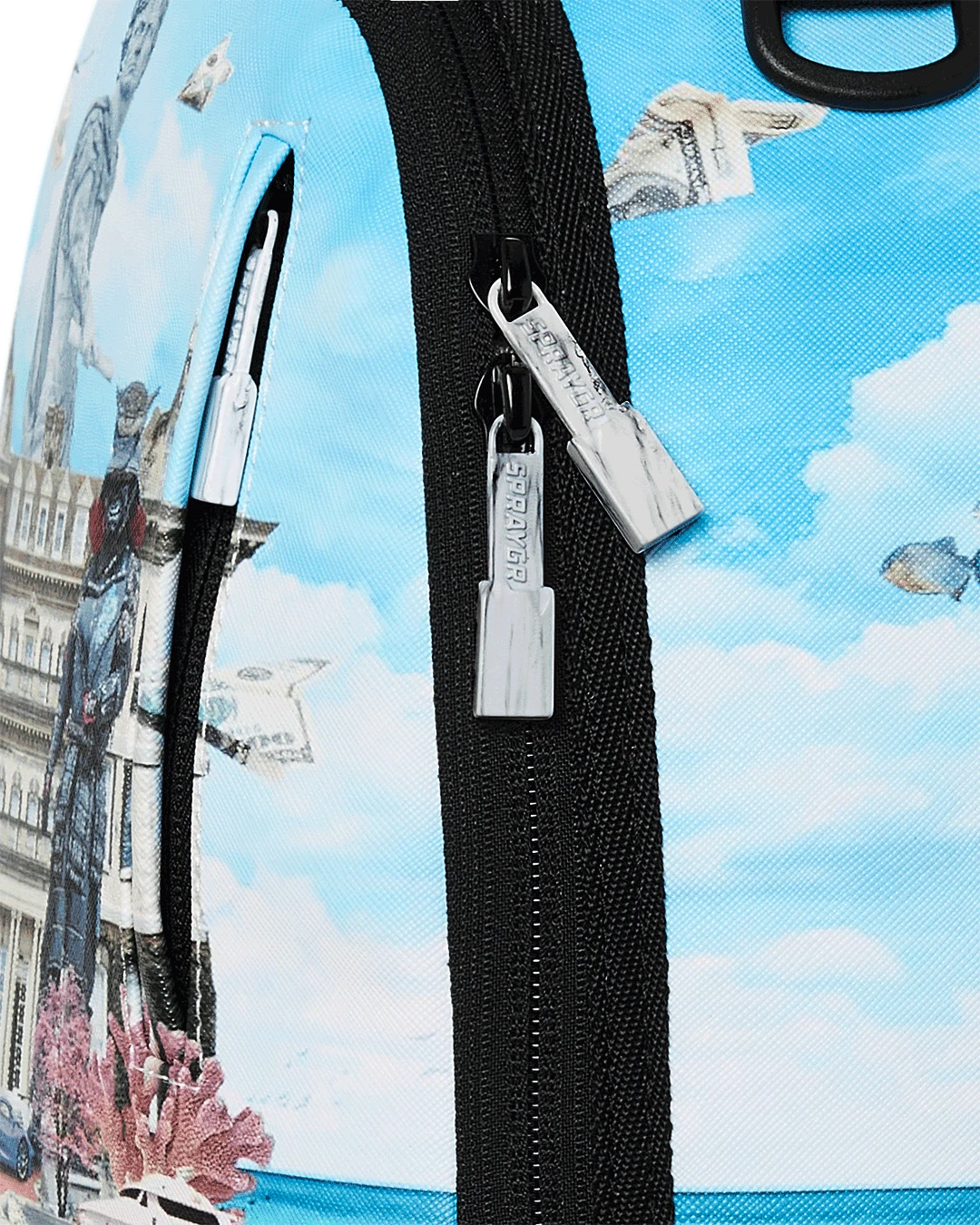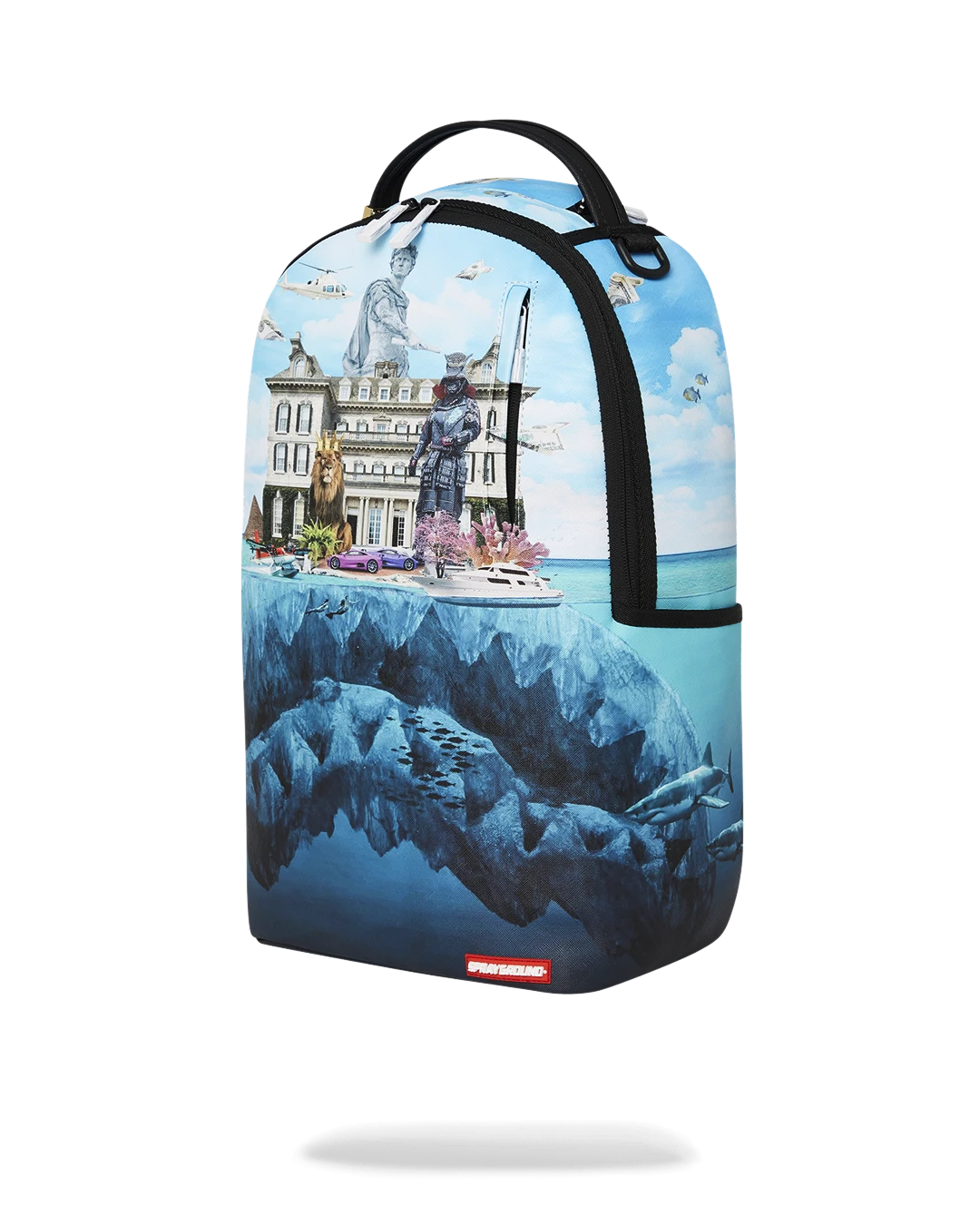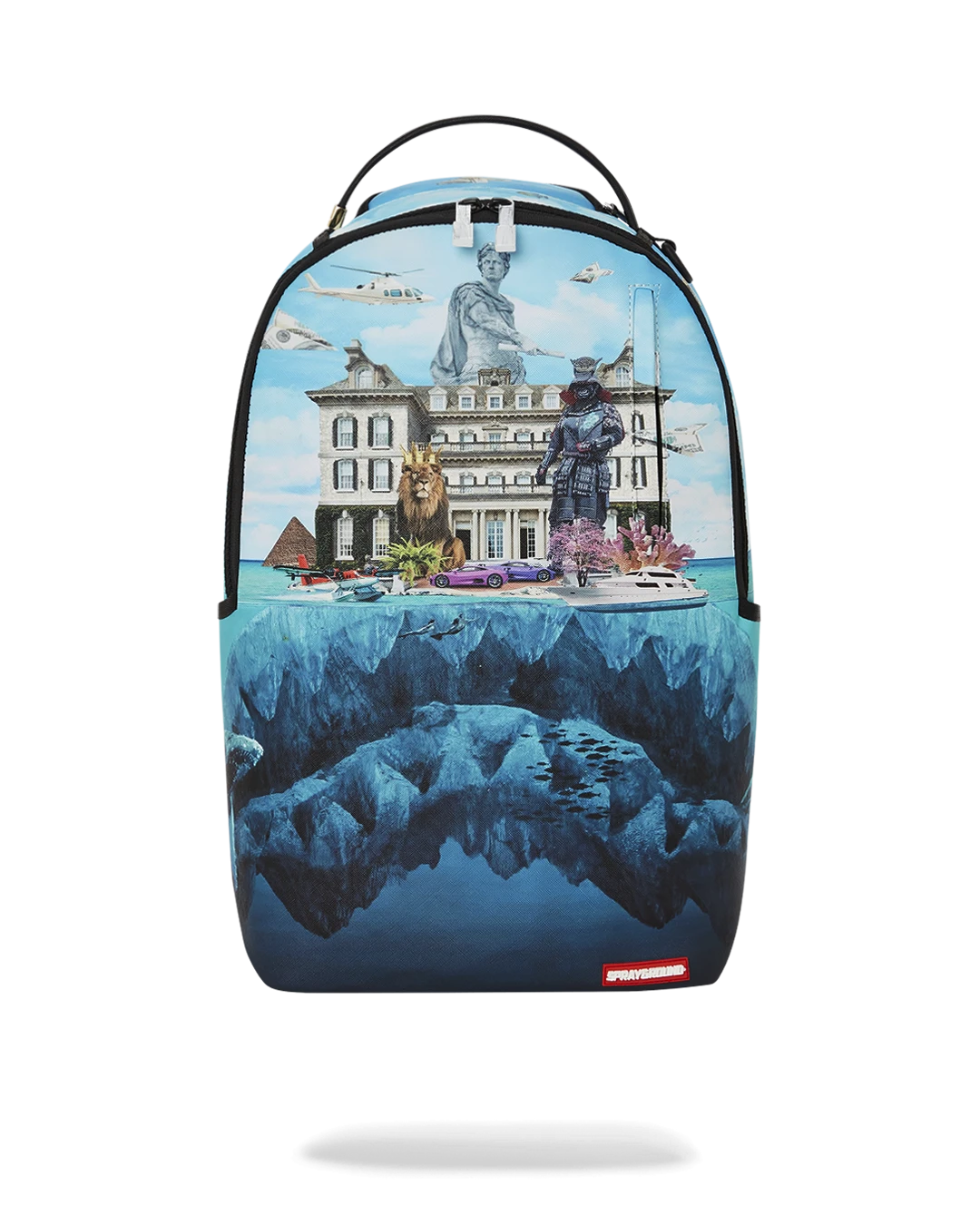 Dimensions: 18″ x 6″ x 11.5″ • Front zipper pocket • Side pockets • Zippered Stash pocket • Separate velour sunglass compartment • Ergonomic mesh back padding • Adjustable Straps for custom sizing • Gold zippers with metal hardware • Metal “Sprayground Authentic” badge • Slide through back sleeve connects to carry-on luggage to free your hands