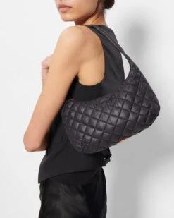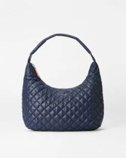 The perfect commuter bag, now in a new larger quilt pattern. Made with REC Bedford nylon and Italian leather detailing, it includes metal zippers, thin straps, snap and zipper closures, and a front pocket detail.