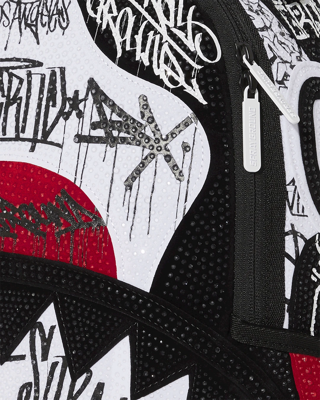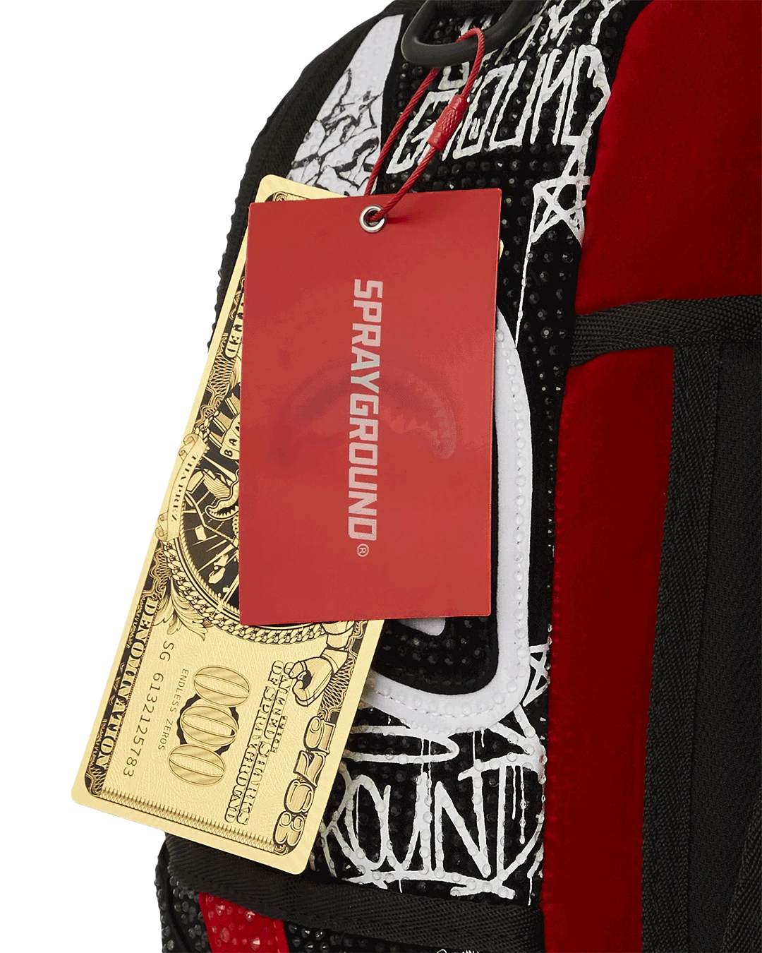 Dimensions: 18″ x 6″ x 11.5″ • Front zipper pocket • Side pockets • Zippered Stash pocket • Separate velour sunglass compartment • Ergonomic mesh back padding • Adjustable Straps for custom sizing • Gold zippers with metal hardware • Metal “Sprayground Authentic” badge • Slide through back sleeve connects to carry-on luggage to free your hands