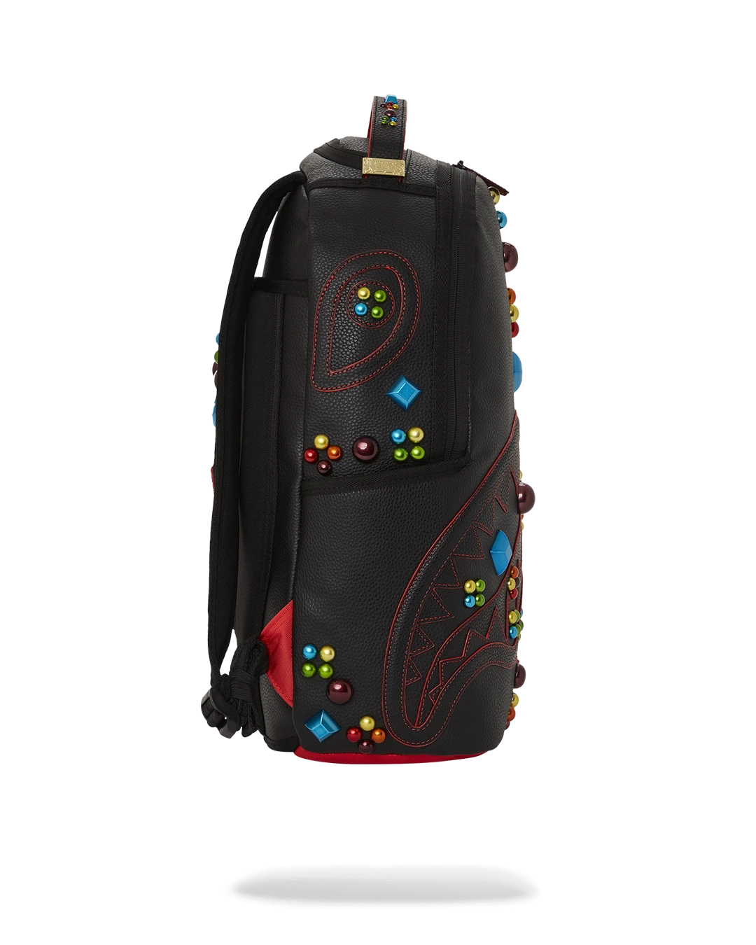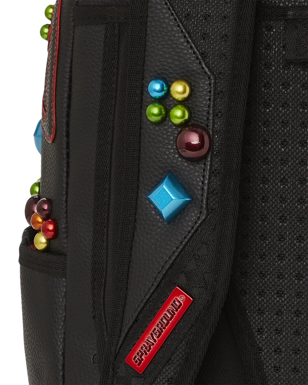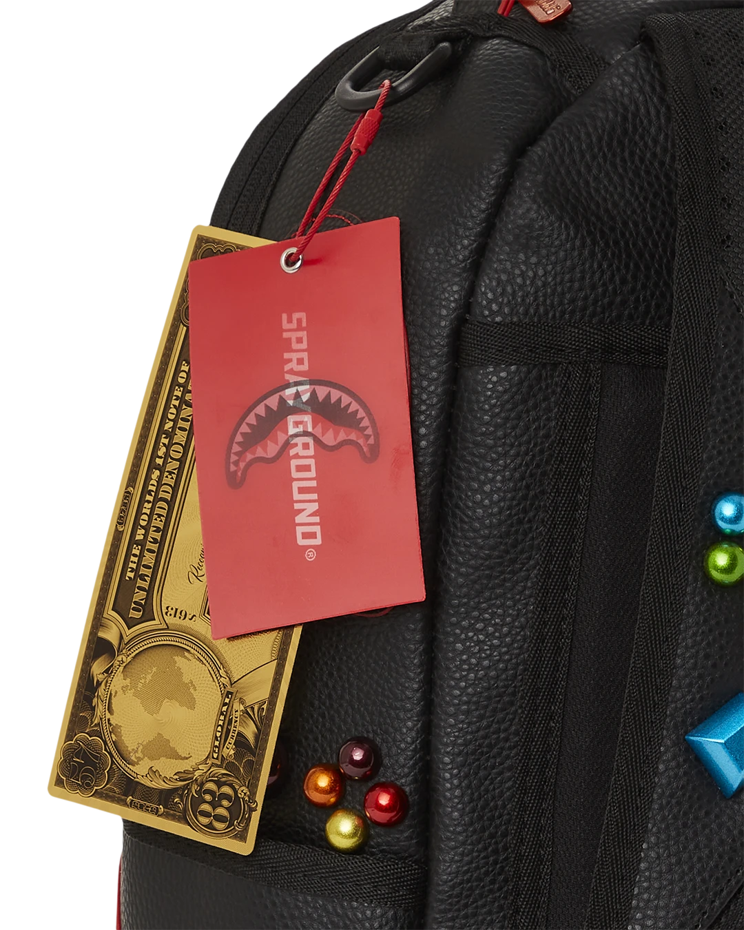Dimensions: 18″ x 6″ x 11.5″ • Front zipper pocket • Side pockets • Zippered Stash pocket • Separate velour sunglass compartment • Ergonomic mesh back padding • Adjustable Straps for custom sizing • Gold zippers with metal hardware • Metal “Sprayground Authentic” badge • Slide through back sleeve connects to carry-on luggage to free your hands