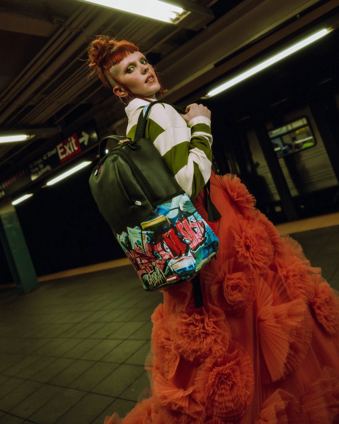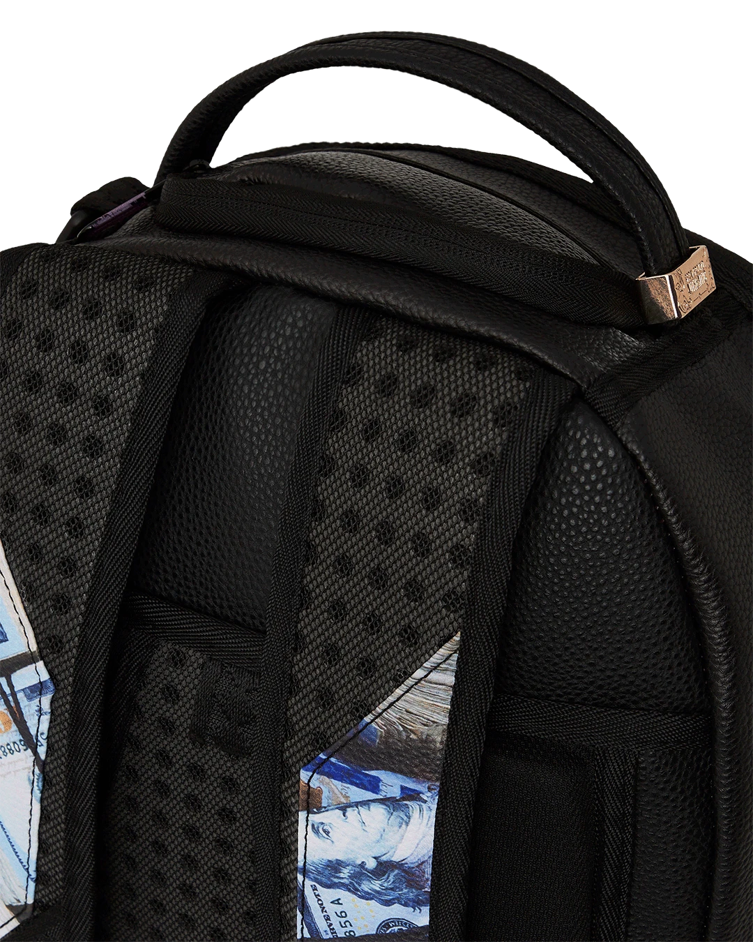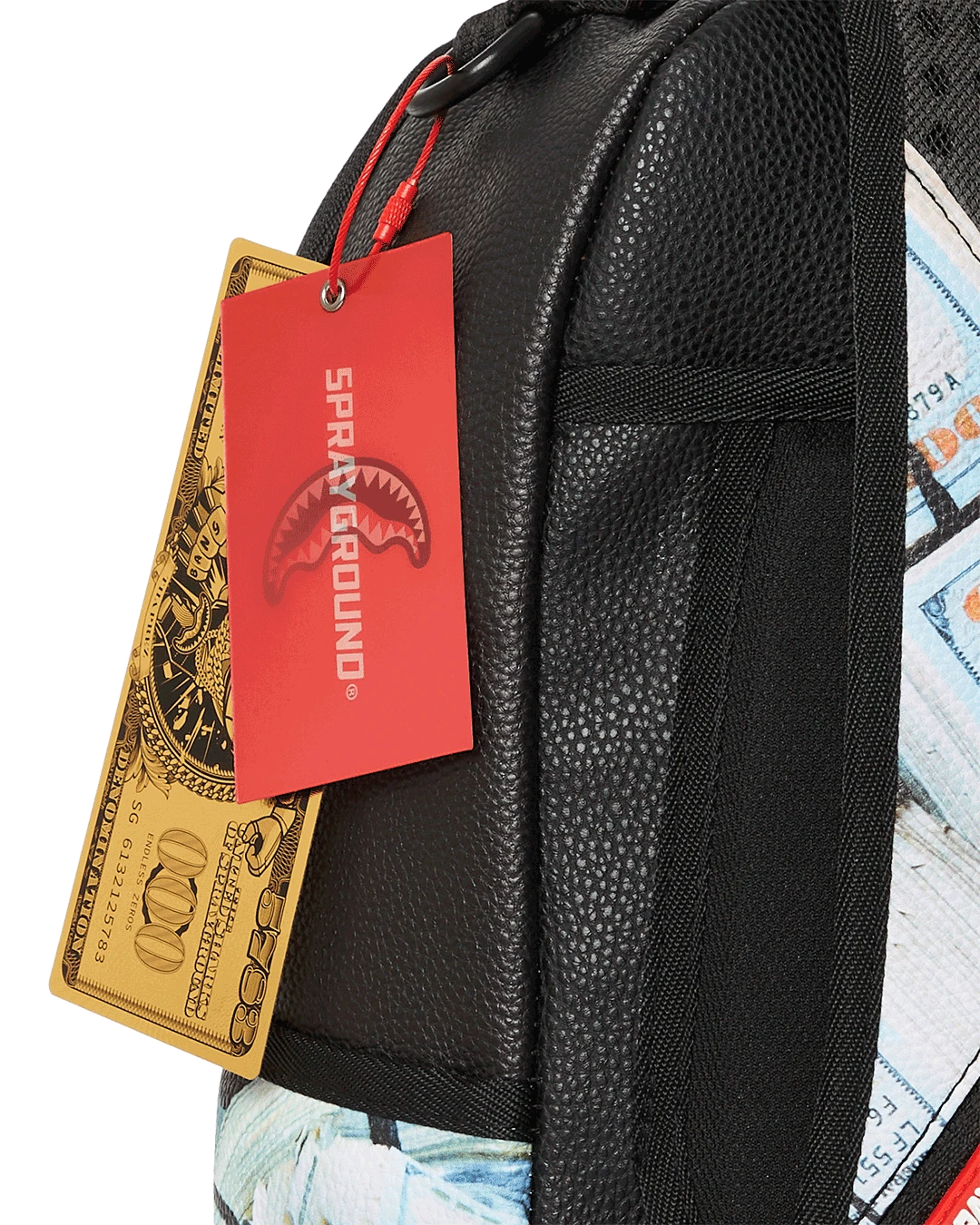 Dimensions: 18″ x 6″ x 11.5″ • Front zipper pocket • Side pockets • Zippered Stash pocket • Separate velour sunglass compartment • Ergonomic mesh back padding • Adjustable Straps for custom sizing • Gold zippers with metal hardware • Metal “Sprayground Authentic” badge • Slide through back sleeve connects to carry-on luggage to free your hands