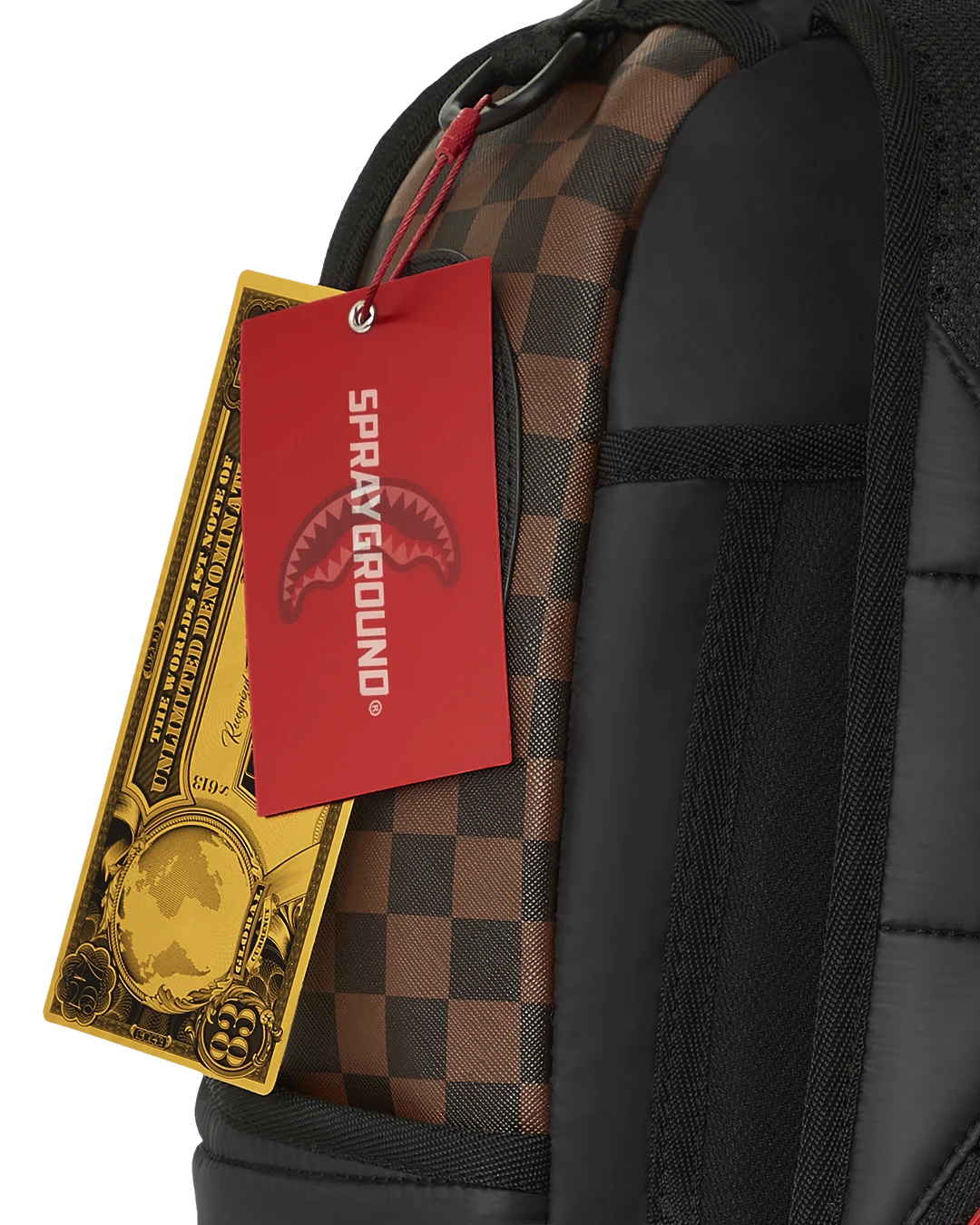 Dimensions: 18″ x 6″ x 11.5″ • Front zipper pocket • Side pockets • Zippered Stash pocket • Separate velour sunglass compartment • Ergonomic mesh back padding • Adjustable Straps for custom sizing • Gold zippers with metal hardware • Metal “Sprayground Authentic” badge • Slide through back sleeve connects to carry-on luggage to free your hands