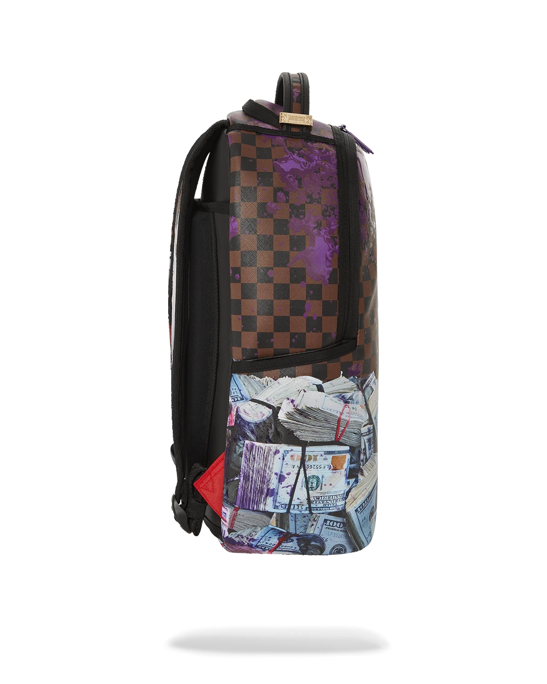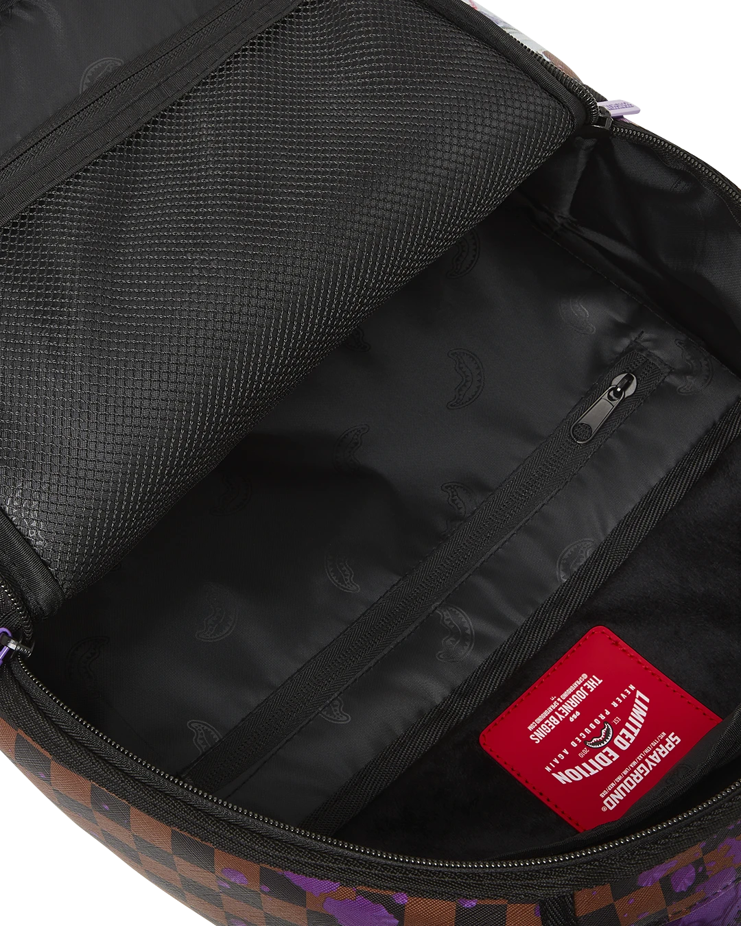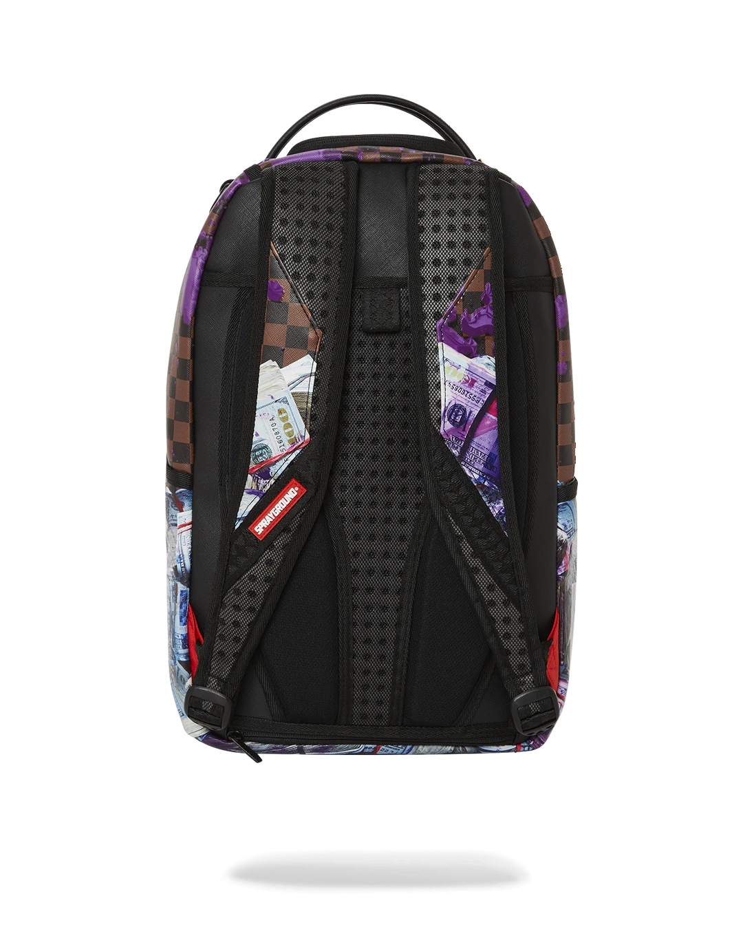 Dimensions: 18″ x 6″ x 11.5″ • Front zipper pocket • Side pockets • Zippered Stash pocket • Separate velour sunglass compartment • Ergonomic mesh back padding • Adjustable Straps for custom sizing • Gold zippers with metal hardware • Metal “Sprayground Authentic” badge • Slide through back sleeve connects to carry-on luggage to free your hands