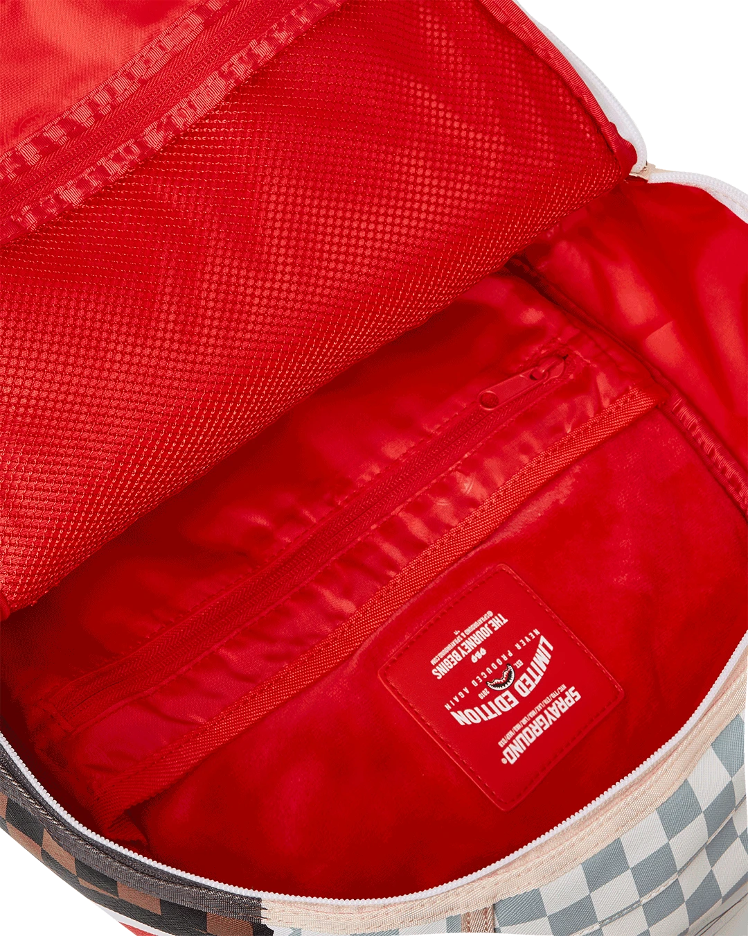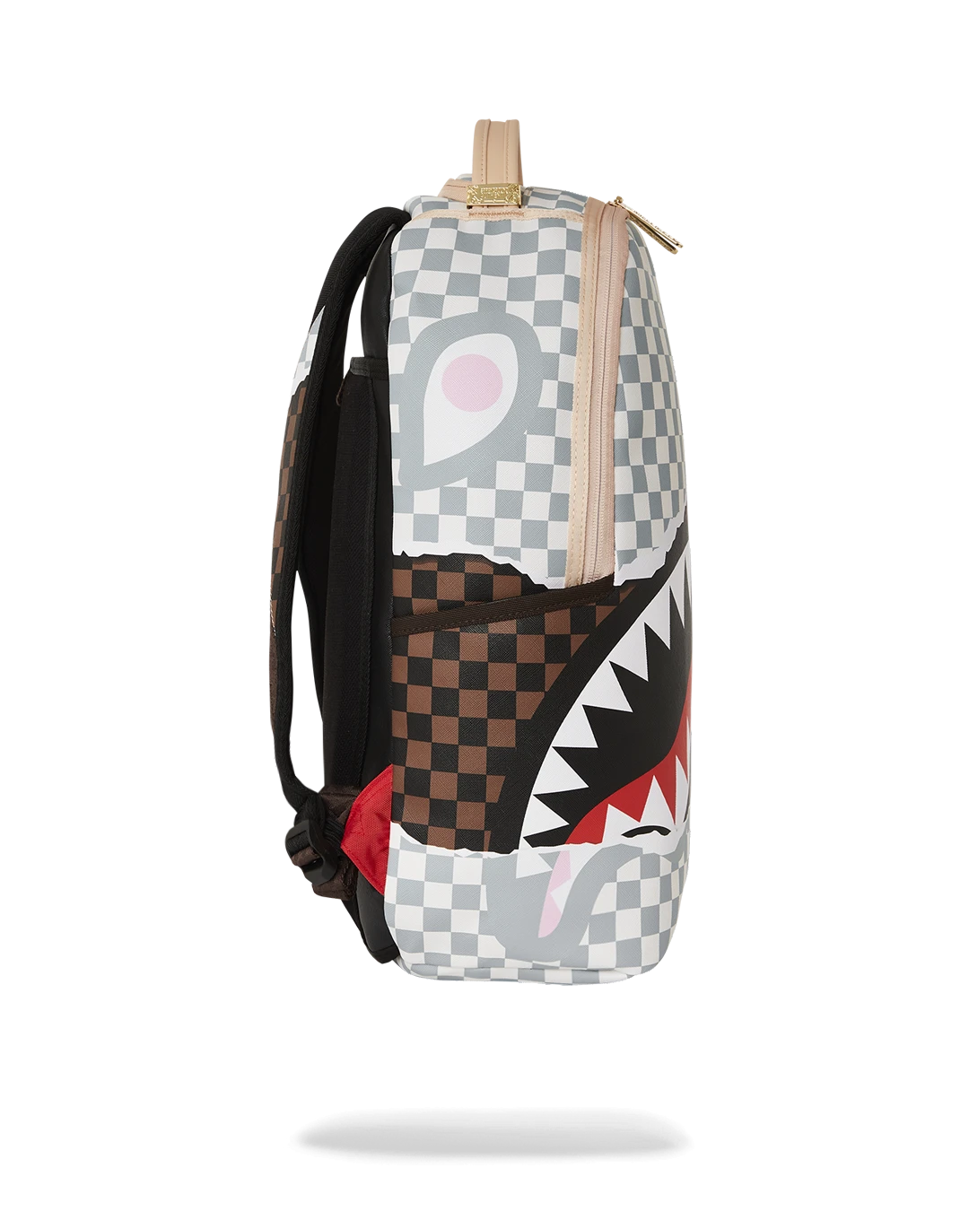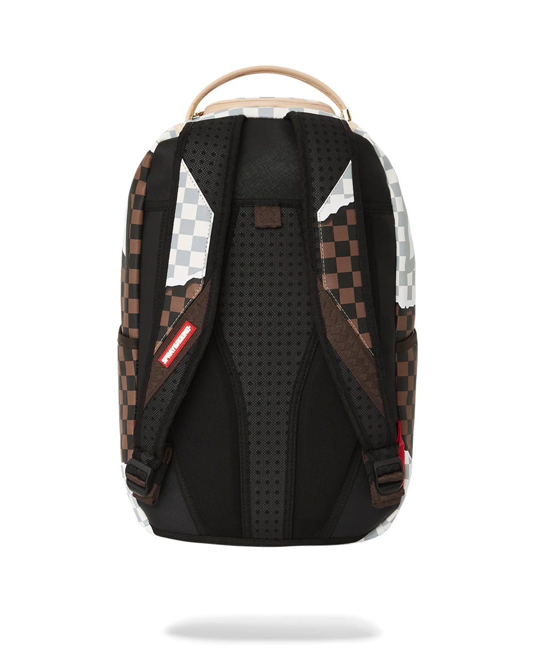 Dimensions: 18″ x 6″ x 11.5″ • Front zipper pocket • Side pockets • Zippered Stash pocket • Separate velour sunglass compartment • Ergonomic mesh back padding • Adjustable Straps for custom sizing • Gold zippers with metal hardware • Metal “Sprayground Authentic” badge • Slide through back sleeve connects to carry-on luggage to free your hands