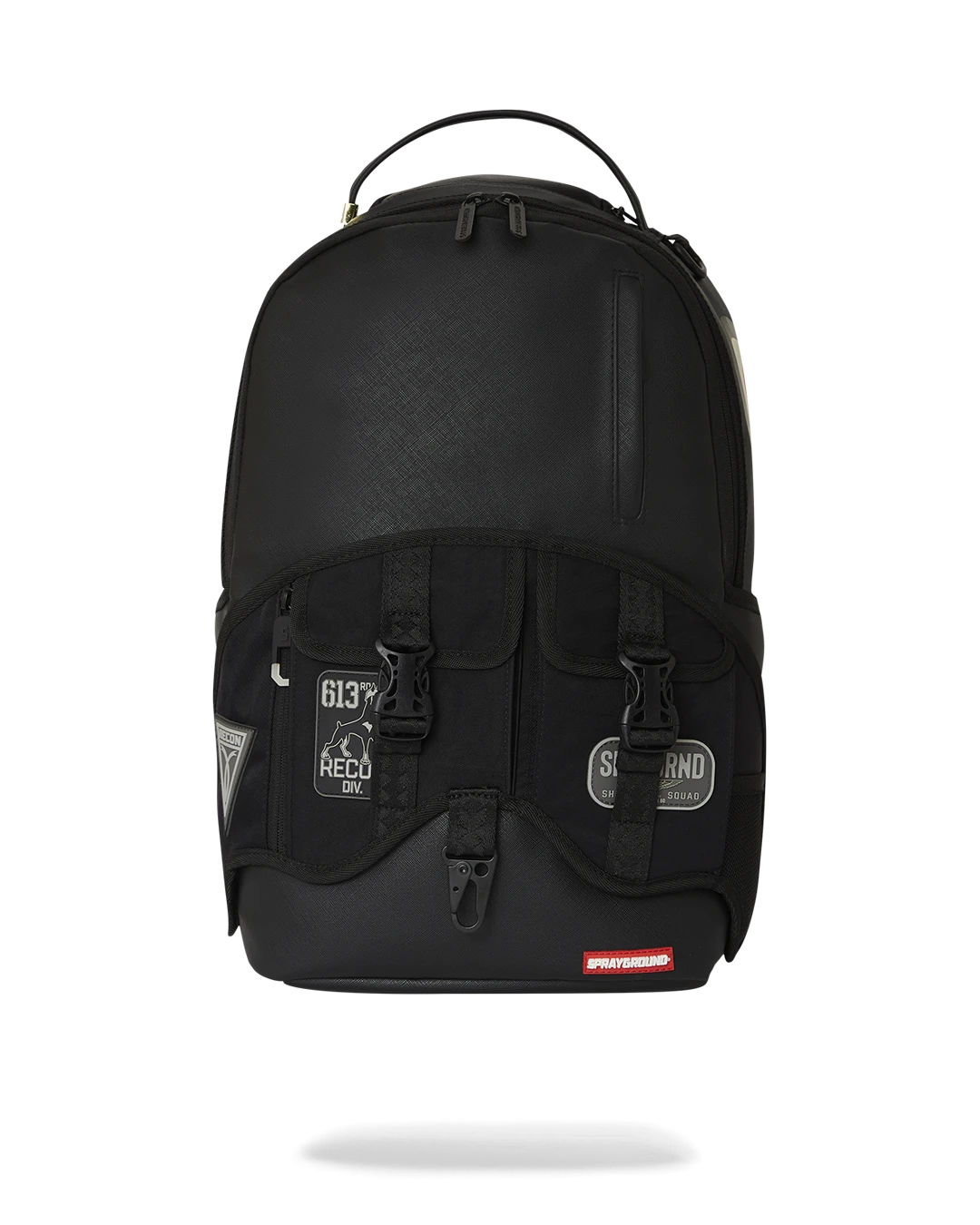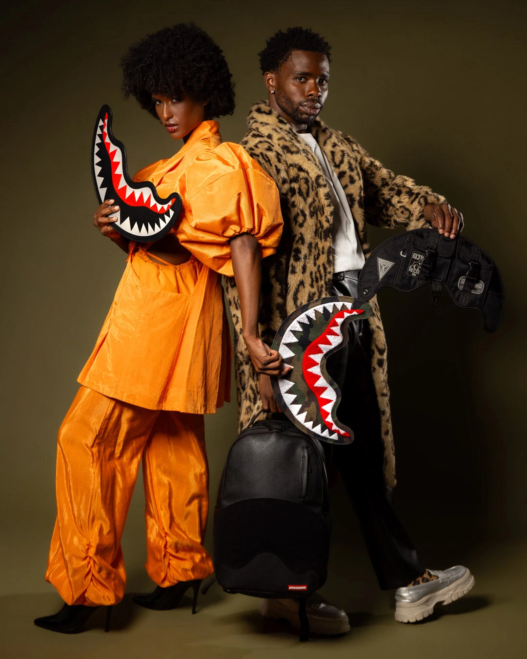 Dimensions: 18″ x 6″ x 11.5″ • Front zipper pocket • Side pockets • Zippered Stash pocket • Separate velour sunglass compartment • Ergonomic mesh back padding • Adjustable Straps for custom sizing • Gold zippers with metal hardware • Metal “Sprayground Authentic” badge • Slide through back sleeve connects to carry-on luggage to free your hands