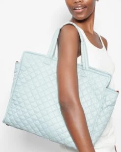 A sized-down version of the Box Tote silhouette, this sleek, structured mini tote has a zippered central compartment with three interior pockets, two exterior zip pockets, and two exterior slip pockets for easy access to your essentials, a detachable, adjustable crossbody strap and a 100% recycled nylon fabrication.